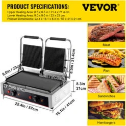 VEVOR Piastra Panini Elettrica 3600W Griglia Bistecchiera Doppia Scanalatura