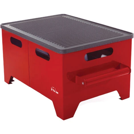 Realizzato in acciaio rosso, questo barbecue ha un design rettangolare, ergonomico ed elegante, e le sue dimensioni (LxWxH: 47,5×32,5×32,5×26,5 cm) e la sua solidità (13kg) vi permetteranno di godere di piacevoli grigliate in terrazza o in giardino, poiché può essere spostato dove preferite.