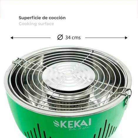 Scoprite la nuova generazione di barbecue a carbone con Kekai. I materiali di alta qualità e le ottime caratteristiche rendono questi barbecue portatili un must per tutti gli amanti della buona cucina. Il modello Crater è dotato di un sistema di raccolta in modo che il grasso rilasciato dal cibo non raggiunga il carbone, evitando così il fastidioso fumo nero e, quindi, può essere utilizzato ovunque. Inoltre, incorpora una ventola a batteria che espelle aria fredda verso la carbonella, facendo accelerare la brace e rendendo il barbecue pronto in pochi minuti. Ha dimensioni compatte che consentono di posizionare questa griglia portatile su un tavolo senza problemi, ed è molto sicura: ha una maniglia di sicurezza integrata e un sistema di bloccaggio per evitare che si muova durante il trasporto. Assaporate l’autentico sapore della griglia grazie a Kekai!nnCaratteristiche:n- Dimensioni: 35x35x25 cm.n- Peso: 4 kg.n- Materiale: acciaio inox.n- Colore: verde.n- Funzioni: Regolazione dell’aria.n- Finitura: verniciato a polvere. Lavabile in lavastoviglie.n- Carburante: carbone di legna.n- Attrezzatura: griglia per barbecue e ciotola per il grasso.n- Specifiche: Piano del tavolo. Parti rimovibili per la pulizian- Batteria: batteria A4x4 (non inclusa).