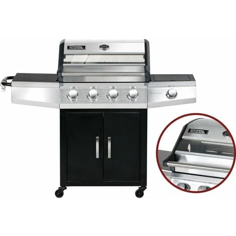 Il barbecue a gas Bingo 5 è fatto principalmente di acciaio inossidabile. Tale struttura permette di utilizzarlo in un ambiente esterno in tutta sicurezza. Questo materiale è perfetto perché è resistente alla ruggine e alla corrosione. È anche molto resistente al calore. Nuovo! Coperchio con finestra di vetro.