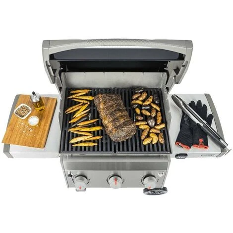 Il Barbecue a gas Spirit II E-310 GBS a 3 bruciatori, è dotato di una spaziosa area di cottura e comodi ripiani laterali per i piatti di portata e ganci per appendere pinze e spatole.Presenti 2 robuse ruote per rendere facile lo spostamento e 6 ganci per utensili.
