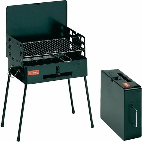 BARBECUE CARBONELLA PIC NIC VALIGETTA FERRABOLI Struttura in lamiera di acciaio verniciata Si trasforma in una comoda valigetta trasportabile Completo di griglia regolabile su 3 altezze di cottura Dimensioni cm. 40 (L) x 30 (P) x 73 (H) Peso Kg. 5.5