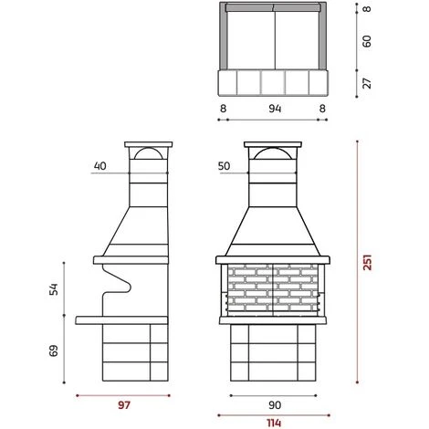I barbecue Edilmark sono strutture prefabbricate idonee per la cottura di cibi alla griglia; possono essere posizionati all’esterno (in giardino ma anche sotto a un porticato). I materiali scelti sono di prima qualità per garantire sicurezza e durata nel tempo: pareti e piano focolare in materiale altamente refrattario, le pareti restanti in un agglomerato cementizio di argilla espansa e armate con staffe in ferro. La graticola di cottura è in acciaio alimentare, regolabile a più altezze, e presenta dei manici in legno per garantire la massima sicurezza durante l’utilizzo.