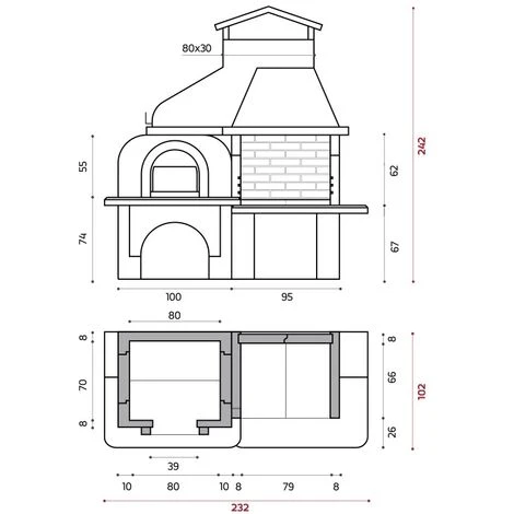 Dim camera di combustione: forno 80x70x25 barbecue cm 79×66