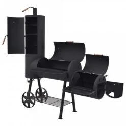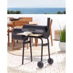 Barbecue A Carbonella Con Coperchio Rotelle E Affumicatore Termometro Nero Satah