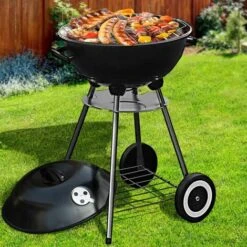 3 In 1 Barbecue A Carbonella BBQ,Griglia A Carbone Grill Carrello, Palla Con Regolazione Della Temperatura , Nero