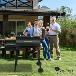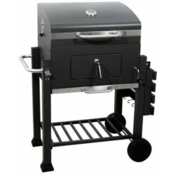 Barbecue A Carbonella Con Affumicatore BBQ Comignolo E Ruote Brisket