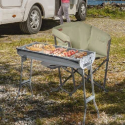 Outsunny Barbecue Grill A Carbone Altezza Regolabile Con Ruote, Nero E Rosso 67 X 51 X 82 Cm
