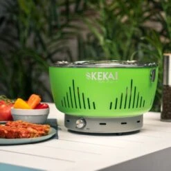 Barbecue A Carbone Portatile Da Tavolo Kekai Crater 35x35x25 Cm Ciotola Raccogli Grassi Con Ventola Regolabile Senza Fumi Verde