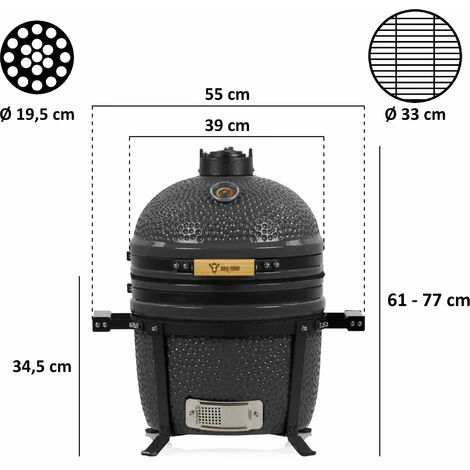 – La consegna comprende: 1x griglia kamado con piedini in ghisa, 1x griglia per la carbonella, 1x griglia per il grill, 1x coperchio di protezione
