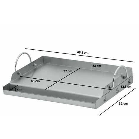 È sufficiente posizionare la piastra rettangolare sulla superficie della griglia per utilizzarla immediatamente. La piastra, realizzata in acciaio inox da 1,5 mm, pesa circa 3 kg e si adatta a molti grill a gas. Grazie alla distribuzione uniforme del calore, la piastra garantisce un risultato perfetto. Sulla superficie della griglia di 45 x 27 cm, il cibo grigliato ha molto spazio a disposizione. Voi e i vostri ospiti ne sarete entusiasti. Il canale di scolo consente di smaltire facilmente i residui di frittura e il grasso/olio in eccesso, in modo da poter continuare a grigliare in modo pulito sulla plancha. In questo modo, il gusto del cibo non verrà alterato e si otterrà un risultato eccellente.