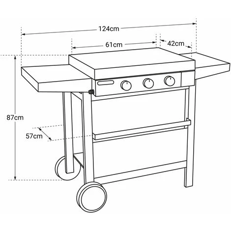 – Plancha: L 124 × L 57 × H 87 cm