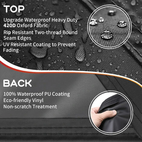 【Utilizza tutto l’anno】 La copertura per griglia grande nera impermeabile è realizzato in materiale oxford aggiornato di qualità 420D ha un’eccellente solidità del colore, non facile da sbiadire, resistenza ai raggi UV, impermeabile, antivento, resistenza allo strappo non è facile da deformare ed è durevole. Fornisce una protezione per tutto l’anno per la tua mensola del barbecue e può essere utilizzata tutto l’anno.