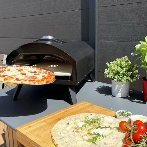 FORNO A GAS PER PIZZA : Il forno per pizza è la perfetta combinazione di design contemporaneo e cottura della pizza a gas. Il forno per pizza è pronto all’uso direttamente dalla scatola. Dopo l’accensione, il forno a gas raggiunge una temperatura di 500°C in meno di 10 minuti. CRUSTY HOUSE PIZZA: l’argilla per pizza assorbe il calore rapidamente e lo trattiene a lungo, in modo che la pizza sia cotta correttamente e croccante in solo 1 minuto. Ti offriamo l’accessorio essenziale per pizze perfette: una buccia di alta qualità e leggera, ideale per caricare, girare e disfare le pizze con facilità. VELOCE E FACILE: il corpo del forno mantiene una temperatura costante per lungo tempo grazie al rivestimento in acciaio inossidabile con pannelli di lana e una fiamma a cascata. Questo forno ha un termometro incorporato nella parte superiore per un migliore controllo della temperatura. L’ampia apertura frontale rende facile mettere le pizze nel forno. 1 o 2 minuti di cottura sono sufficienti per gustare pizze fino a 30 cm di diametro. CARATTERISTICHE: dimensioni del prodotto: L 51cm x L 41cm x H 23,7cm; peso del prodotto: 12 kg; superficie di cottura (pietra per pizza): 33 cm x 33 cm – ideale per pizze fino a Ø30 cm; solo per uso esterno; materiale del forno per pizza: acciaio inox + smalto; colore: nero; temperatura massima: 500°C; pronto a cuocere in 10 minuti; compatto: adatto a tutti gli spazi esterni; facile da avviare: nessun montaggio, accensione a gas integrata; gambe pieghevoli; la confezione contiene: 1 x forno a gas per pizza; 1 x pietra per pizza; 1 x buccia per pizza; 1 x manuale di istruzioni. MANUTENZIONE: La struttura del telaio è in acciaio laminato per resistere alle alte temperature, garantendo così un uso a lungo termine. Si consiglia di pulire il forno per pizza una volta che si è raffreddato. Per pulire il forno per pizza, utilizzare un detergente neutro e una spugna o un panno morbido. Quando non viene utilizzato, è meglio conservarlo in un luogo asciutto e riparato.