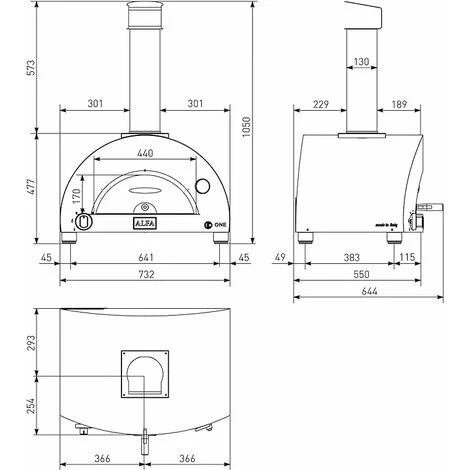 ONE a gas si scalda in soli 10 minuti e cuoce la pizza come un vero forno professionale napoletano Le dimensioni sono 73x55x48 cm e pesa solamente 55 kg Il piano cottura è 50 x 40 cm Consuma solo come due fornelli di casa insieme! Disponibile in versione GPL e metano. Lo sportello ha uno spioncino al centro, questo ti permetterà di cuocere anche a sportello chiuso potendo monitorare la cottura dei tuoi cibi ogni momento. La camera è interamente costruita in acciaio inox rinforzato. Il doppio strato di isolamento in fibra ceramica utilizzato nei forni professionali per pizzerie garantisce un’ottima tenuta della temperatura in cottura e permette alle superficie laterali di non scaldarsi troppo. Le 4 tavelle in dotazione sono spesse quasi 3 cm, questo permetterà un graduale rilascio di calore da parte del piano per una cottura impeccabile. L’accessorio in dotazione, la paletta “inforna e sforna” ti permette di utilizzare il tuo forno ONE la sera stessa dell’acquisto ed è perfetta per infornare pizze, calzoni e pane. Il deflettore brevettato Alfa permette al calore di uscire in modo graduale dalla canna fumaria ottenendo così elevatissime prestazioni La bocca del forno ONE è perfetta per non far dipendere il calore della camera di cottura e per poter permettere all’amatore di gestire in modo confortevole la pizza all’interno del forno. La versione a gas è ideale per chi vuole avere un forno portable, ma non ha la possibilità di accendere la legna a causa di possibili normative nella propria area geografica o solo per un vicino troppo invidioso. Il nuovo forno domestico a gas in casa Alfa è un vero forno professionale ma che ti permette anche di sbagliare e di far ingelosire, perchè no, il tuo vicino di casa!