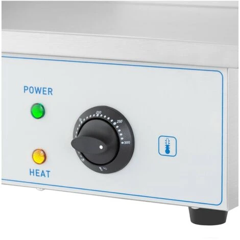 La piastra elettrica dispone di una larghezza di 55 cm e viene protetta lateralmente e dietro da un paraschizzi. Questo protegge le pietanze dal vento e dalla perdita di calore, facendo sì che gli alimenti non cadano o che gli schizzi di grasso non sporchino la cucina. Il grill è realizzato in acciaio inox di alta qualità ed è protetto dalla corrosione, inoltre, è facile da pulire.