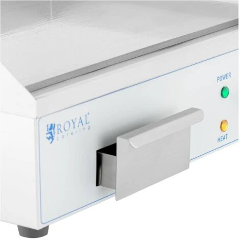 La piastra elettrica RC-EG54 di Royal Catering è un dispositivo da cucina professionale ideato per l’uso in ristoranti, hotel, bar, caffetterie e agenzie di catering, ma è ideale anche per l’uso privato. Il fry top doppio è utilizzabile in modo flessibile grazie agli elementi riscaldanti regolabili separatamente, in modo che su di essi tu possa preparare hamburger, verdure, bistecche e molte altre pietanze.