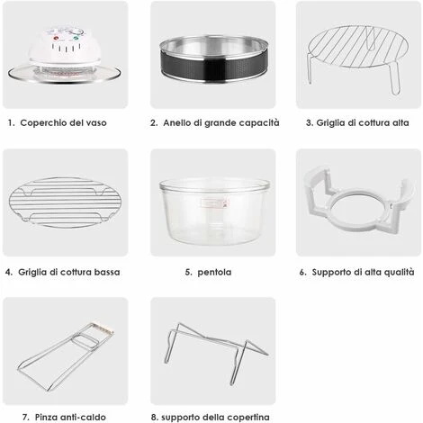 Multifunzione: È molto potente, equivalente ad un forno, esso è una friggitrice ad aria, una teglia da forno, una friggitrice elettrica e può realizzare una varietà di piatti a casa per ospitare i tuoi amici.