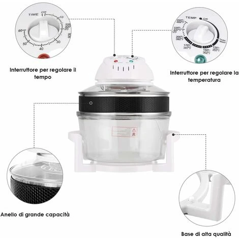 Visibilità: Il contenitore del forno alogeno è realizzato in vetro, in modo da poter osservare il processo di cottura chiaramente, evita la cottura eccessiva.