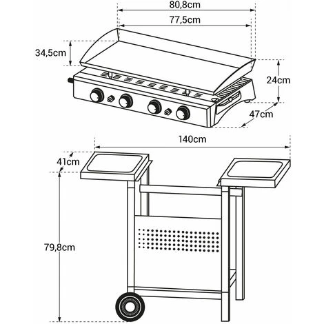 – Griglia + carrello: L 140 x L 55 x H 111 cm