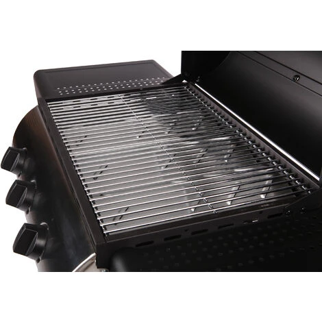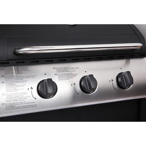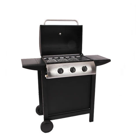 Facile da usare, dispone di 3 fuochi e di un’ampia superficie di cottura con due griglie in acciaio cromato. Cappa dotata di termometro, comoda per controllare la cottura quando è chiusa. Carrello con due ripiani laterali e un ripiano inferiore per riporre piatti e cibo. Leggero e facile da spostare grazie alle sue due ruote. Oltre alla sua facilità d’uso, è chic ed elegante con la sua gonna nera che nasconde la bombola del gas. Infine, questo barbecue è pensato per l’uso esterno. La sua struttura in metallo è robusta. I suoi bruciatori in acciaio inossidabile sono resistenti alla corrosione. Facile da pulire: lascia il barbecue alla massima potenza per qualche minuto. I residui di cibo vengono bruciati e facilmente rimossi.