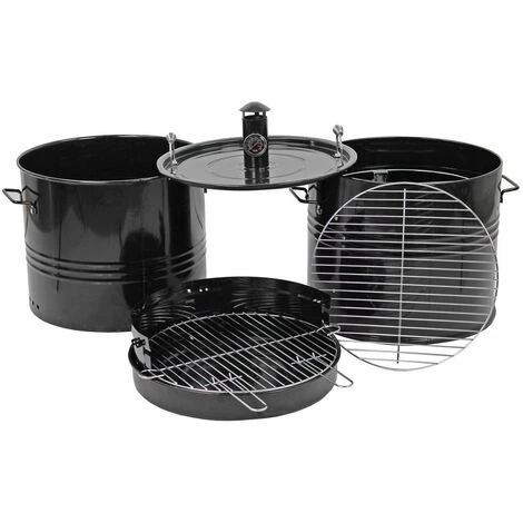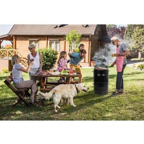 Il barbecue ha forma cilindrica ed è composto in acciaio smaltato nero. La sua struttura gli consente di essere un barbecue da giardino dall’estrema solidità e sicurezza, capace di garantire tutta la solidità di cui le vostre serate di grill hanno bisogno.