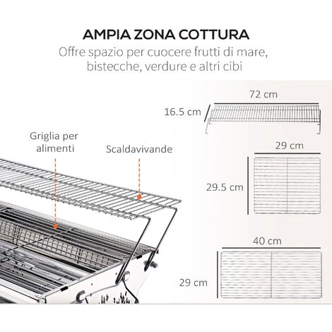 I veri professionisti del BBQ sanno che il sapore affumicato che questo tipo di cottura dona alle pietanze, è imbattibile. Per questo Outsunny ha creato questo incredibile prodotto: in acciaio inossidabile, è dotato di due griglie antiaderenti, per evitare che i tuoi cibi si attacchino alle superfici, e apposite ventole, per mantenere una ventilazione ottimale. Il design pieghevole è perfetto per trasportare comodamente il BBQ da una destinazione all’altra. Sfida i tuoi amici, è diventa il miglior cuoco in circolazione con il tuo nuovo barbecue Outsunny.