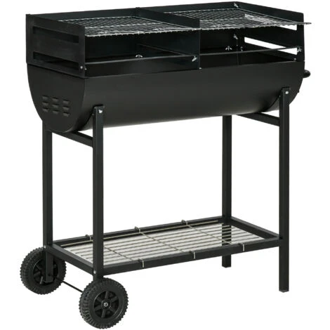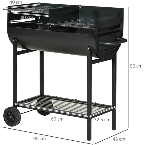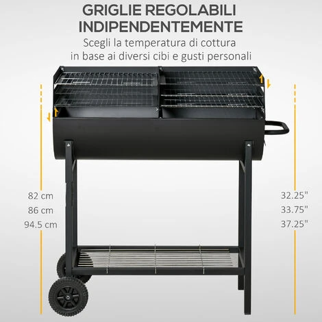 Ami fare grigliate all’aperto con amici e famiglia? Il nostro barbecue Outsunny è perfetto per te! Grazie al suo design multifunzionale e durevole, ti permette di soddisfare i gusti di ognuno, vegetariani inclusi. Il BBQ è dotato di due griglie separate, per cuocere comodamente carne e verdure, un ripiano inferiore per sistemare piatti, utensili o condimenti, e 2 ruote per spostarlo facilmente.