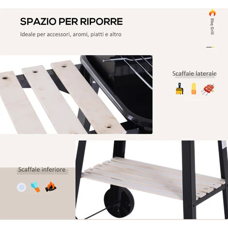Questa griglia a carbone Outsunny è una soluzione perfetta per picnic all’aria aperta. Trattare i tuoi amici e la famiglia a volte con gustosi barbecue è una buona scelta per riunirsi quando il tempo è bello. Con la sua conveniente misura e la natura mobile, costruita dal smalto nero e polvere resistente ad alta temperatura, questa griglia ha una generosa area per grigliare gourment ovunque tu vada.
