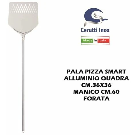 PALA PIZZA SMART QUADRA CM.36X36 MANICO ALLUM. CM.60 FORATA