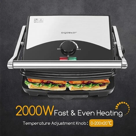 PIASTRA PER PANINI TOAST BISTECCHIERA ANTIADERENTE 2000W GRIGLIA ELETTRICA