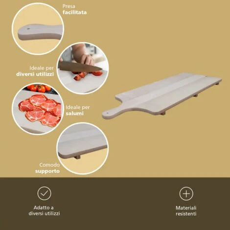 Questi fantastici taglieri sono realizzati in legno di betulla compensato, naturalmente resistenti al taglio senza danneggiare la lama e dotati di un pratico manico.