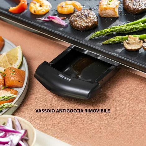 Con questa piastra da Tristar puoi cucinare per fino a 10 persone! La piastra lunga offre spazio generoso per cucinare ed è dotata di un termostato staccabile, regolabile. Il vassoio per il grasso è posizionato in modo conveniente sottl la piastra. La piastra ha un elemento riscaldante nascosto, piedini antiscivolo ed un indicatore di potenza a LED. E’ progettato con parti lavabili nella lavastoviglie.