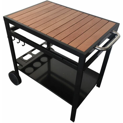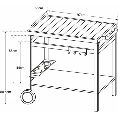 La credenza AVEIRO è il mobile essenziale per cucinare facilmente ovunque. È possibile appoggiare la plancha o preparare i pasti sul grande vassoio alto che funge da piano di lavoro. Questa credenza di design dai materiali di tendenza – l’acciaio della struttura abbinato al legno del vassoio – vi garantirà una buona stabilità durante la preparazione dei piatti grazie ai suoi due piedi. Inoltre, grazie alle due ruote e alla maniglia integrata, è possibile spostarlo ovunque si voglia. Pratica, la credenza AVEIRO è dotata di un portabottiglie e di un portautensili che vi permetteranno di avere a portata di mano tutto il necessario per cucinare.