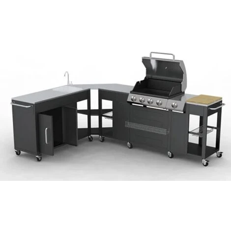 Dal design moderno e lineare, il barbecue Montana vi mette a disposizione un bbq professionale e allo stesso tempo una completa e accessoriata cucina da esterno, molto resistente e solida, con struttura, coperchio e griglie in acciaio inox.