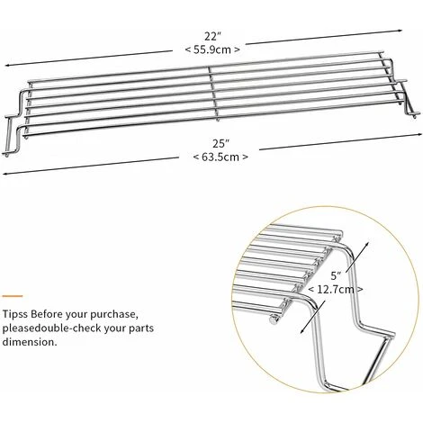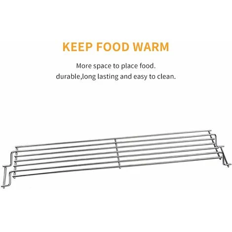 - 【Dimensioni】- 63cm(L) x 11.7cm(W) x 5.8cm(H) Materiale】: CROMATO. Griglia scaldavivande ideale per il tuo barbecue Weber (pacchetto) 1 griglia scaldavivande.